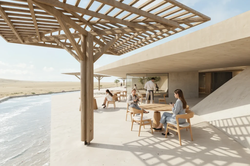 Mostly natural woods and “light-as-protagonist” colors